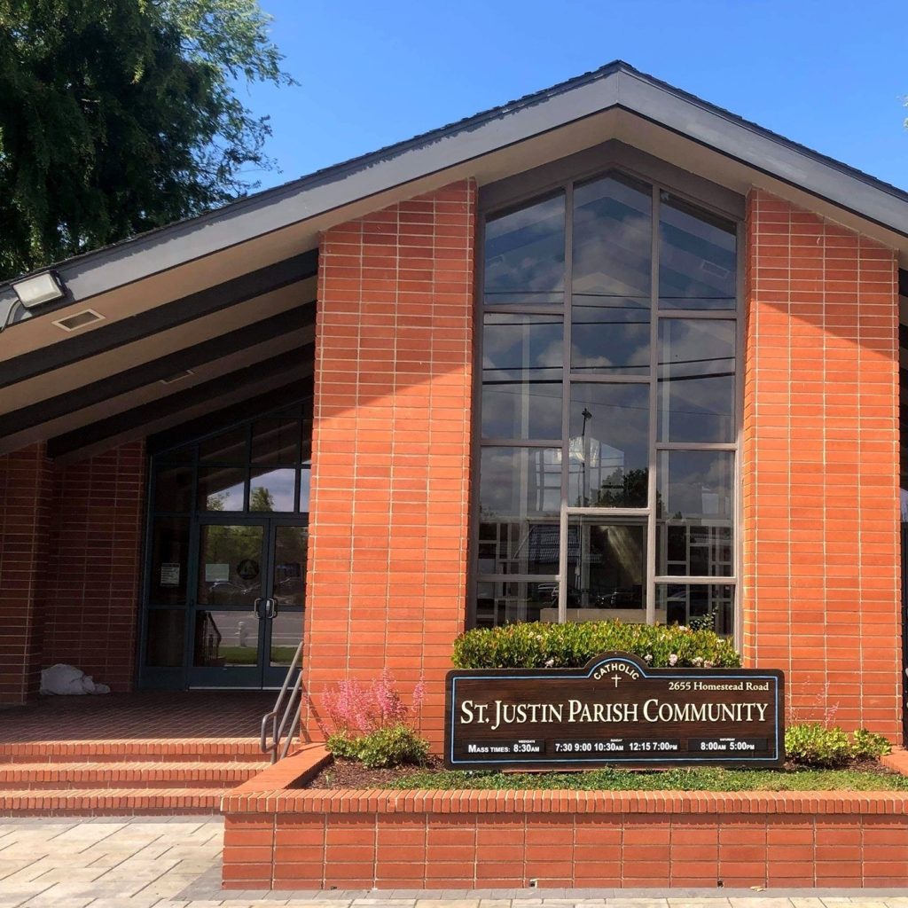 St. Justin Parish Community, Roman Catholic Church, 2655 Homestead Road, Santa Clara, CA 95051, (408) 296-1193. Mass times, contact information, organizations, parish history, Community Ministry Food Program